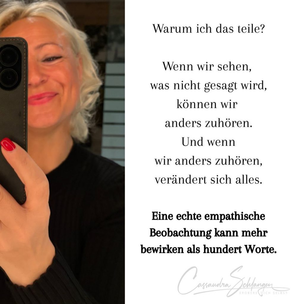Deshalb habe ich mich weiter qualifiziert in der emotionalen Intelligenz. Nicht als weitere und aneinandergereihte Qualifikation in meiner Vita – sondern aus Verantwortung. Weil ich mit Menschen arbeite. Weil ich Beziehung ernst nehme. Und weil ich glaube, dass unsere Welt feinfühlige, präsente Menschen braucht, die nicht nur reden, sondern sehen.